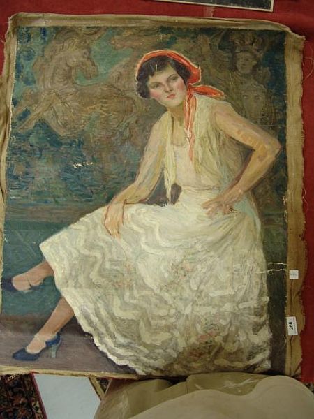 portrait of woman in white dress with red scarf