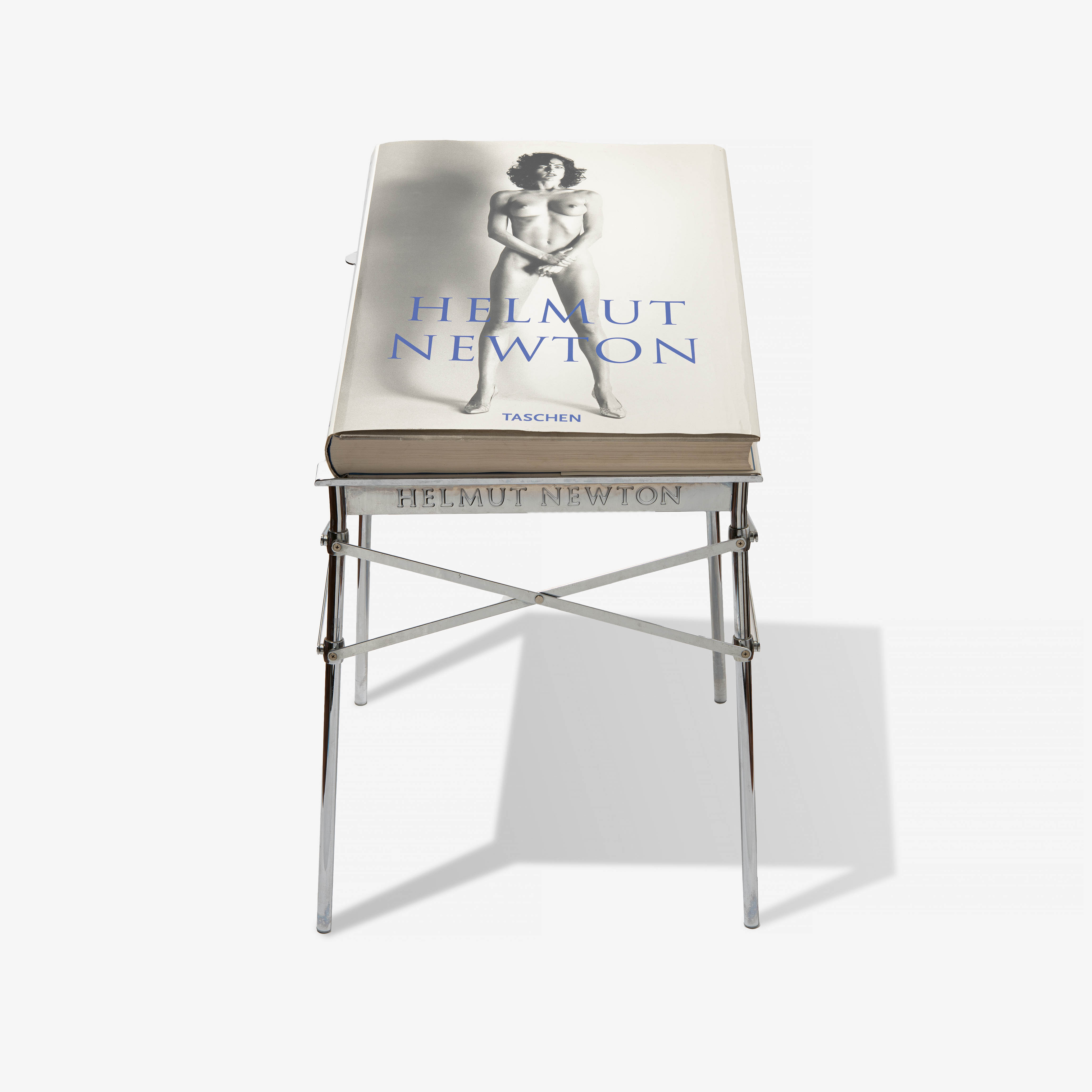 Hardcover oversized photography book, signed in blue pencil by Helmut Newton, and stamped with number 02177 (from a limited edition of 10.000)