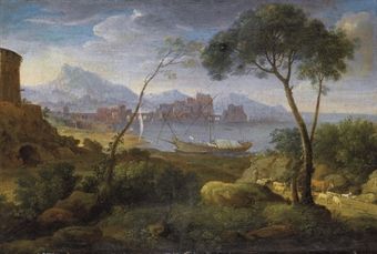 Paesaggio costiero con pastore e animali