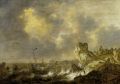 Schiffbruch auf stürmischer See vor südlicher Küste.
