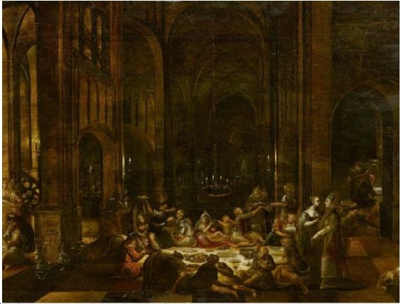 | Temple interior with rich sacrificial offerings to the god Baal. | |