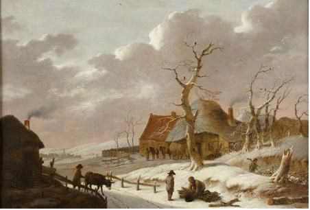 | A SNOW COVERED LANDSCAPE WITH VILLAGERS GATHERING FIREWOOD | |