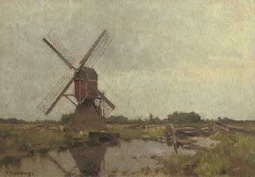 | Molen bij Fennemeer, Warmond: A windmill in a polder landscape | |