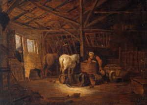 STALLINTERIEUR MIT BÄUERLICHEM PAAR