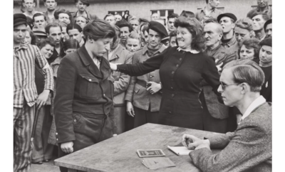 | Gestapo informer recognized by a woman she had denounced, Transit Camp, Dessau, Germany | |