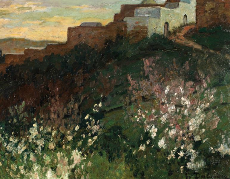 ARBRES EN FLEURS DEVANT LA VILLE ARABE