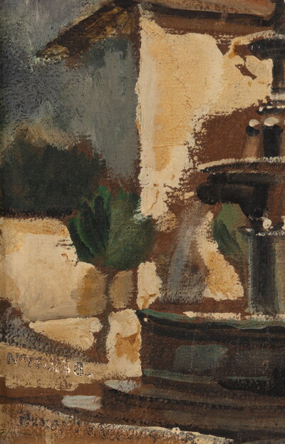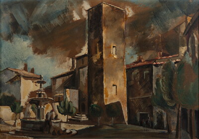 Henri de WAROQUIER (1881-1970) - Tour à Viterbe (Italie) Huile sur carton signée en bas à gauche - 33 x 46 cm - N238 du catalogue général de Henri Waroquier | |