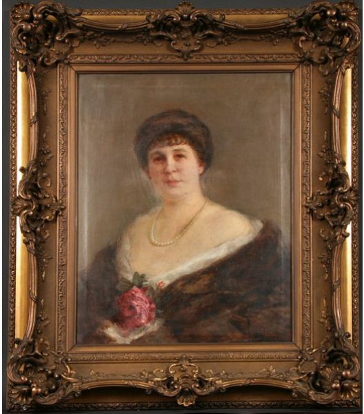 Portrait of a woman holding flowers.