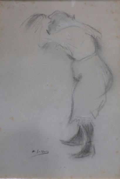 Etude de femme se coiffant