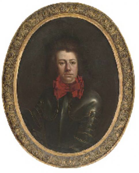 | Portrait of a gentleman, half-length, in a breast plate and pouldrons, with a triple red bow | |