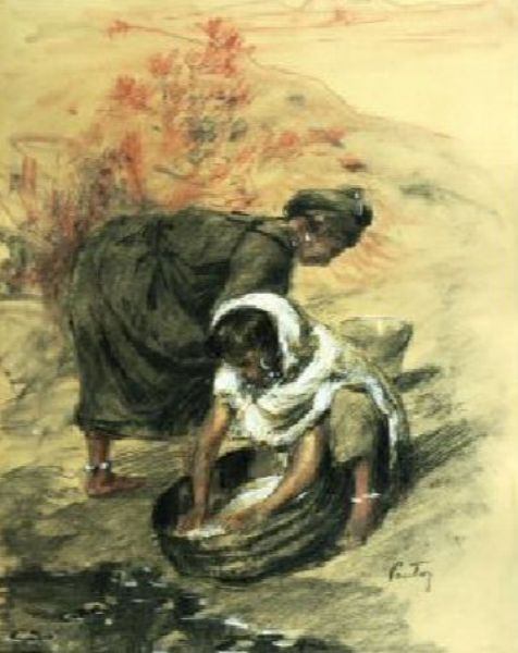Lavandières au bord de l'oued, Maroc