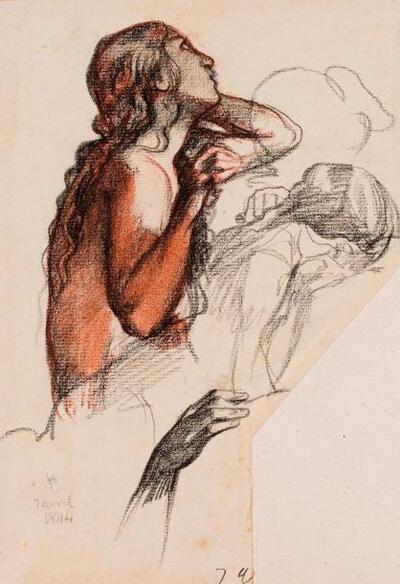 | Painting Pierre noire, estompe sanguine et lavis de sanguine | |