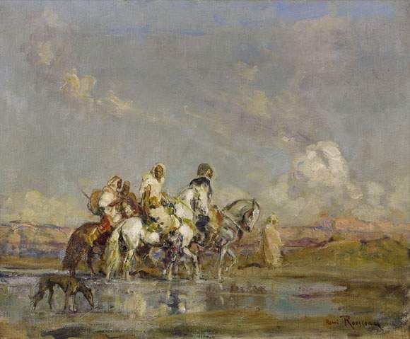 CAVALIERS ARABES TRAVERSANT UN GUE