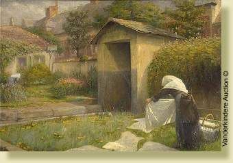 Béguine étendant le linge dans les jardins du béguinage de Gand