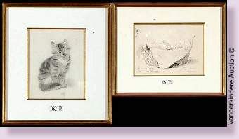 «Chaton» et «J’y pense» ou «Chatte observant ses petits dans le panier»