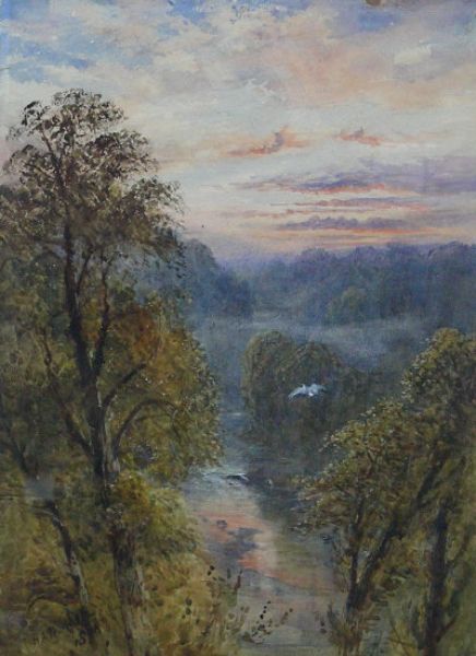 'On the River Greta Yorkshire' - Heron in flight at sunset