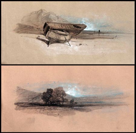 | Group of five Coloured Chalk Drawings removed from a sketchbook, Vignette Studies, Doorways, Landscape and Coastal View | |