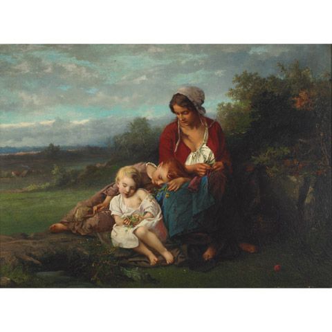 MOTHER AND CHILDREN RESTING IN A FIELD
