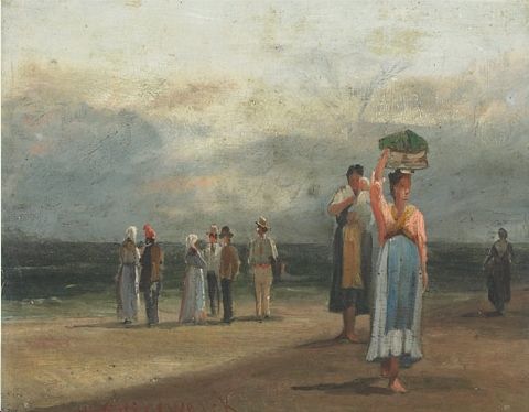 TOWNSFOLK ON A BEACH, CUBA?
