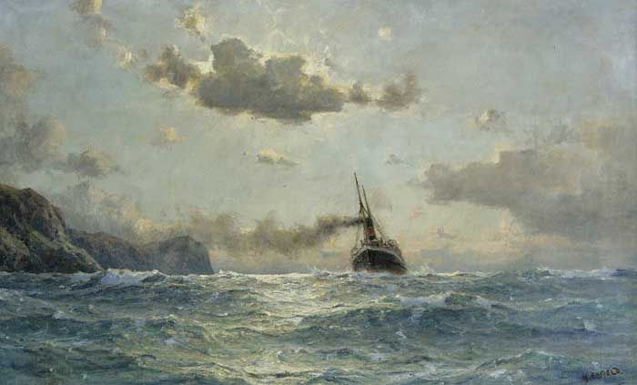 Dampfschiff vor Felsküste