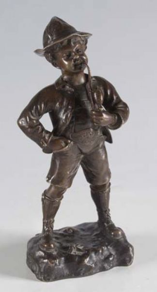 Pfeife rauchender Knabe in bayerischer Tracht,