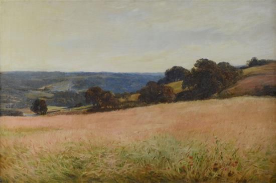 view across a Surrey cornfield