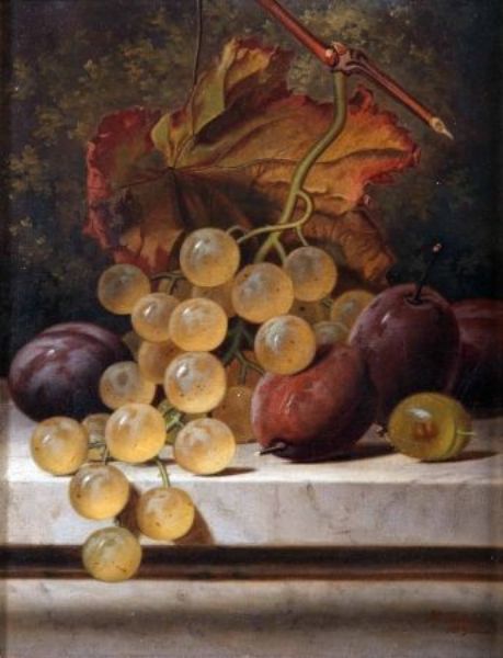 | Still Life Study of White Grapes and Plums on a Marble Ledge | |