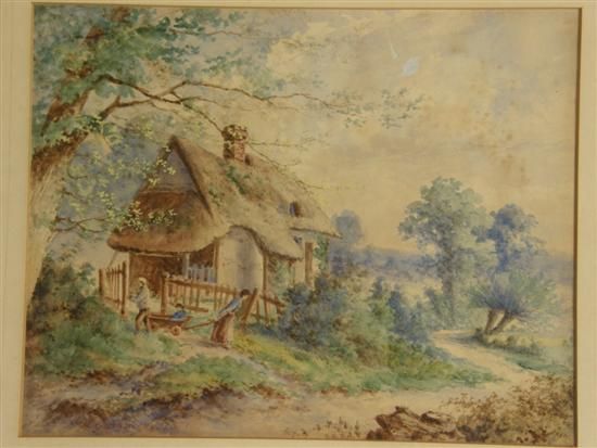 Thatched cottage with children playing outside