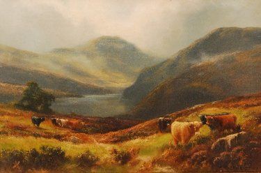 highland loch scene with cattle in the foreground