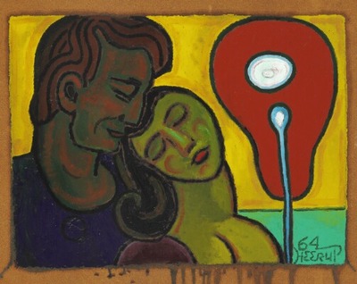 Loving Couple. Signed Heerup 64. Oil on masonite. 82×102 cm. | |