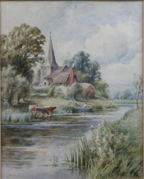 | Rural Landscape with Cattle Watering in Front of a Sussex Church | |