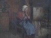 | An interior scene with an elderly lady knitting by the stove | |