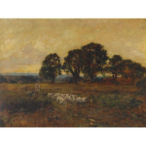 GENTLEMAN HERDER WITH HIS DOG AND FLOCK
