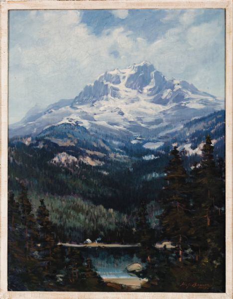 VIEW OF A WESTERN MOUNTAIN PEAK AND LAKE