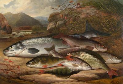 Salmon and trout catch on a riverbank