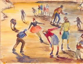 Skaters on the Pond/ Cityscape (on verso)