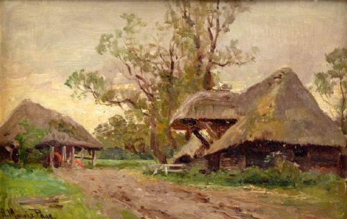 A LANDSCAPE WITH THATCHED BARNS