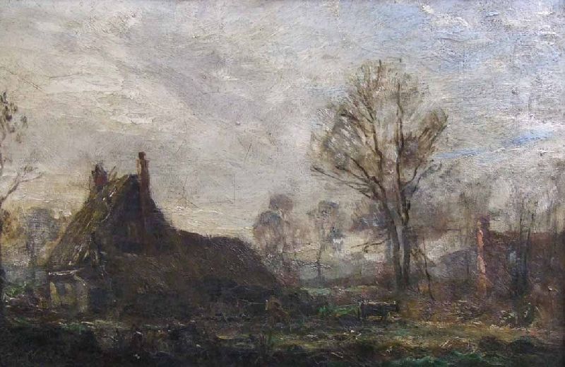 Rural Scene with Thatched Cottage and Cows