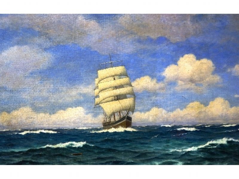SHIP IN FULL SAIL ON CHOPPY SEAS