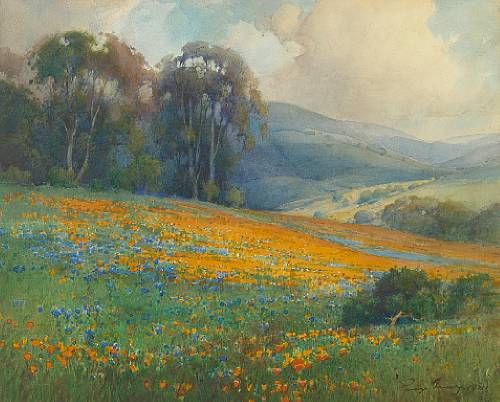 | California wildflowers and rolling hills | |