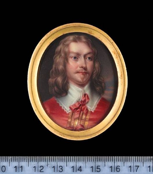 | Sir Charles Lucas (1613-1648), wearing pink silk doublet trimmed with gold braid and held with pink ribbon bows and white lace t | |