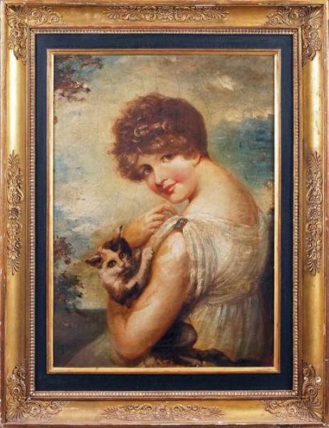 JEUNE FILLE AU CHAT SUR FOND DE PAYSAGe