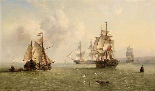 | Merchantmen going about their trade off the northeast coast of England, with a Dutch hoy further out to sea | |