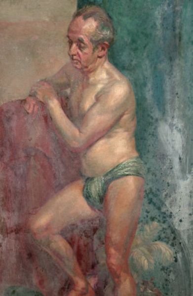 Self portrait of the Artist, standing full-length, wearing a loin cloth
