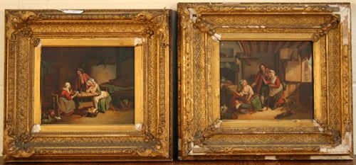 | Cottage Interior with a Couple and Fortune-teller at a Table beside a Cat in a Basket, and Cottage Interior with a Couple and El | |