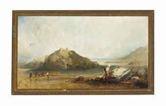 | A young family and fishermen by a lake, with a castle citadel in the distance | |