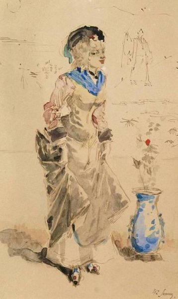 FILLE PRÈS DE LA POTICHE FLEURIE