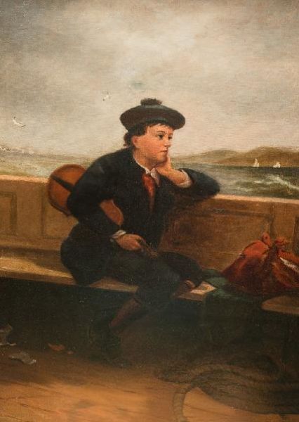 YOUNG BOY WITH A VIOLIN ON A BOAT