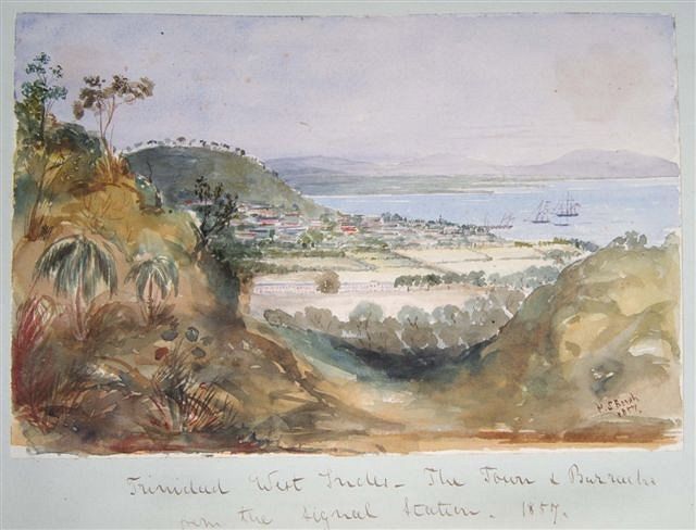 Trinidad West Indies, the town and barracks from the signal station, 1857