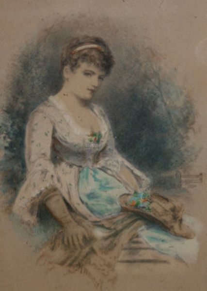 | Portrait of a young woman, seated in a rural landscape and A young woman seated holding flowers | |